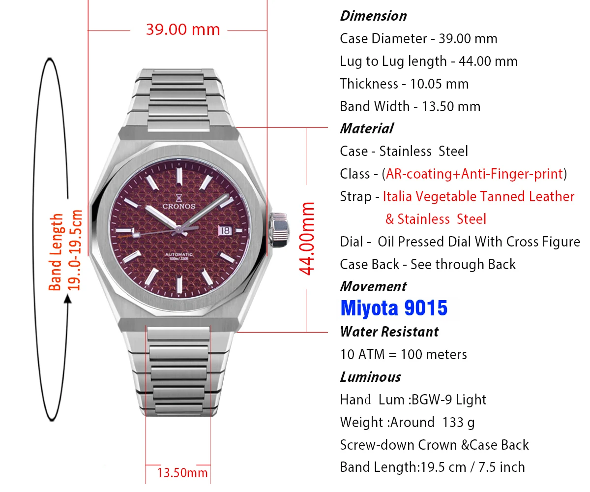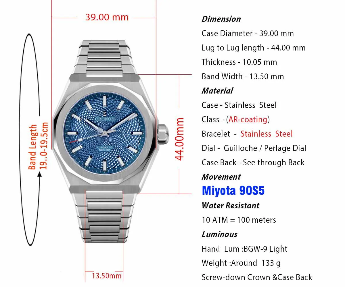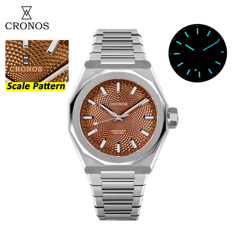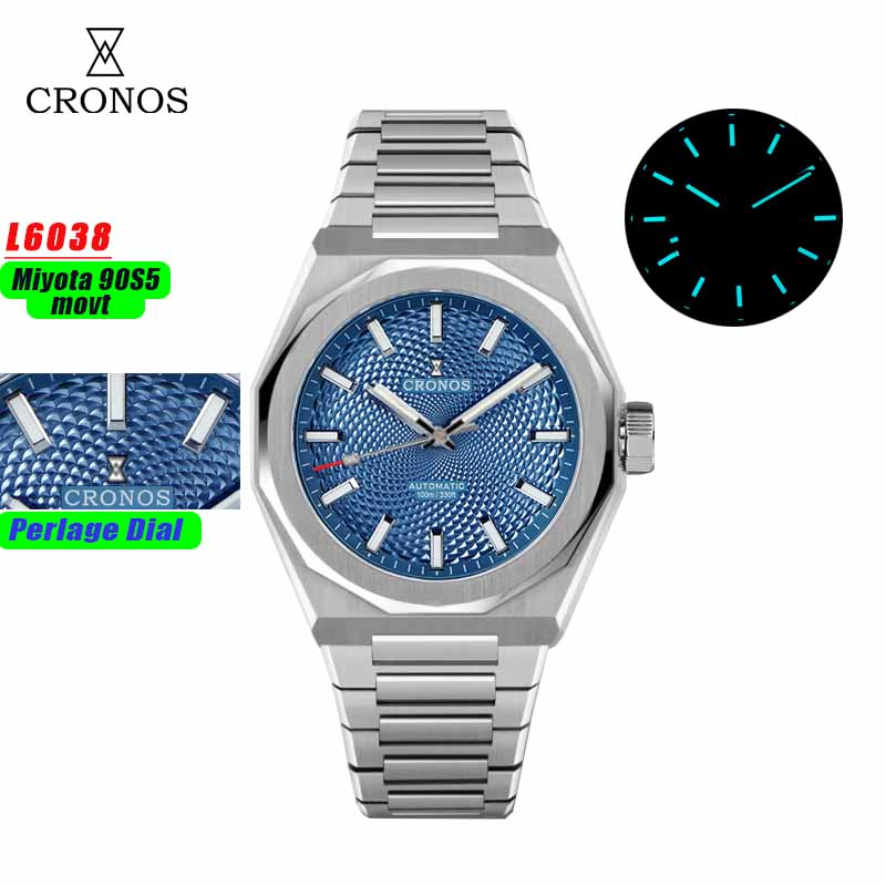 Cronos Luxury Men Watch 39mm Automatic Miyota 90S5 Wristwatches Scale Pattern Sapphire 10ATM See-through Back L6038M
