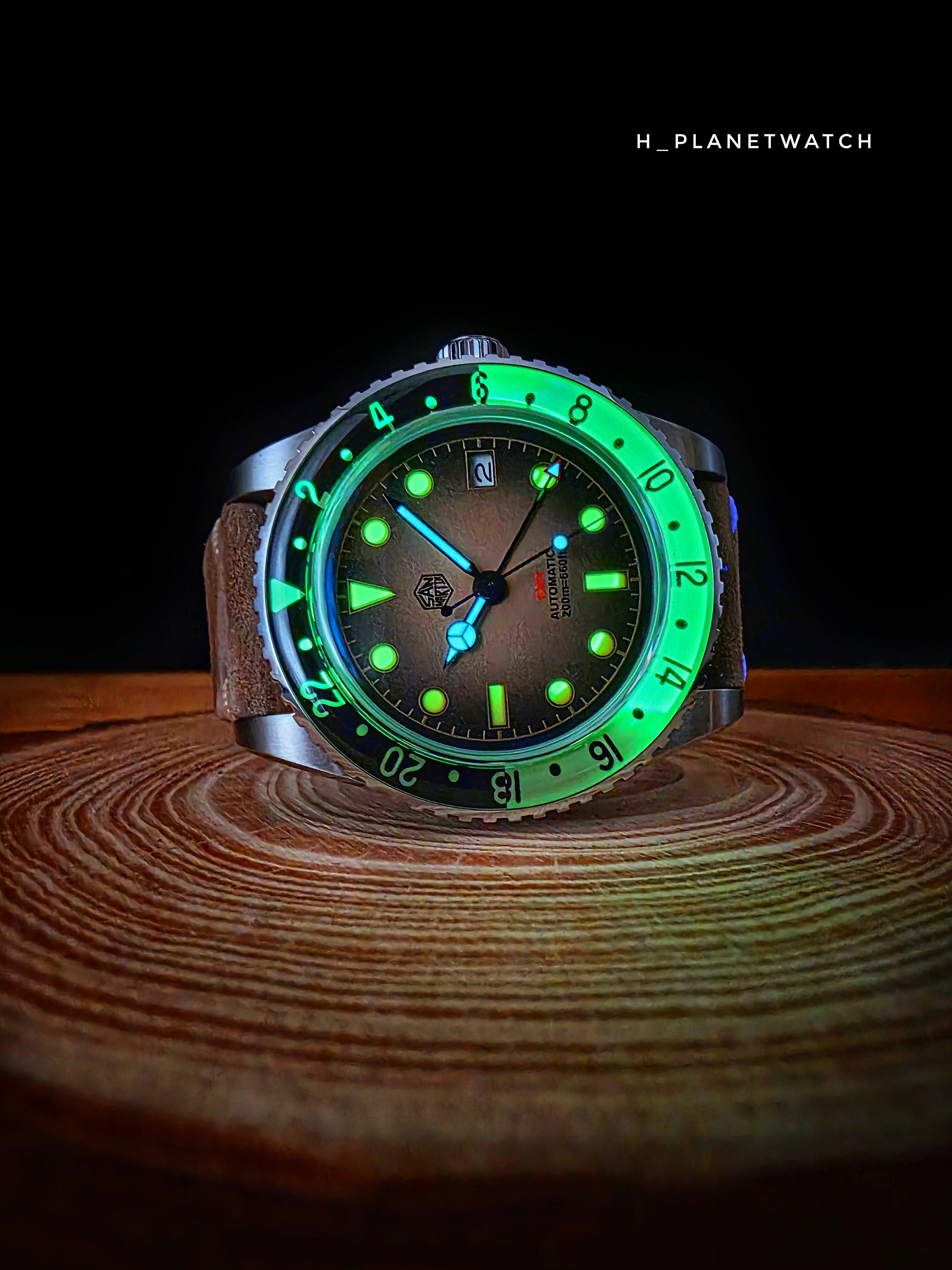 Full Luminous Bidirectional Sapphire Glass Bezel Effect: Retro SLN C3 Green Luminous
